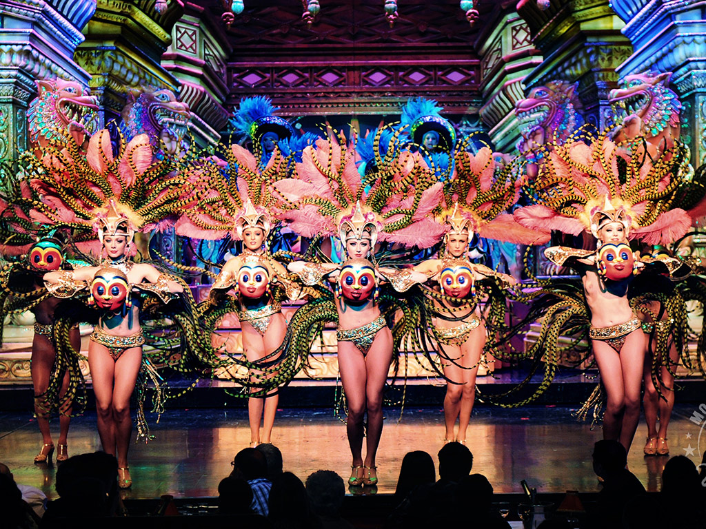 Today Moulin Rouge continues to astound visitors with the fabulously extravagant Feerie show with 100 performers bedecked in 1,000 costumes of sequins, feathers and rhinestones, as well as five pythons and an aquarium tank of 40 tonnes of water.