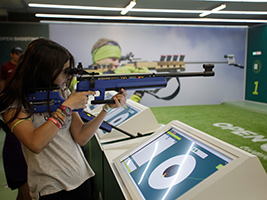 En OPEN CAMP tú serás el protagonista y podrás ponerte en la piel de tus ídolos viviendo tu minuto de gloria en escenarios reales donde han competido las leyendas más grandes del deporte. Emula al mejor futbolista del mundo y marca un gol de falta en el césped del Estadio Olímpico, vive las emociones de ser una estrella del básquet y anota la canasta ganadora en la primera pista de básquet interactiva. Experimenta también qué siente el hombre más rápido del mundo al cruzar la línea de meta en los 100 metros libres y siente la adrenalina de pilotar uno de los simuladores oficiales de Moto GP. Además, en OPEN CAMP, podrás rendir homenaje al movimiento paralímpico participando en la carrera de 60 m en silla de ruedas.