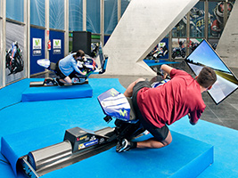 En OPEN CAMP tú serás el protagonista y podrás ponerte en la piel de tus ídolos viviendo tu minuto de gloria en escenarios reales donde han competido las leyendas más grandes del deporte. Emula al mejor futbolista del mundo y marca un gol de falta en el césped del Estadio Olímpico, vive las emociones de ser una estrella del básquet y anota la canasta ganadora en la primera pista de básquet interactiva. Experimenta también qué siente el hombre más rápido del mundo al cruzar la línea de meta en los 100 metros libres y siente la adrenalina de pilotar uno de los simuladores oficiales de Moto GP. Además, en OPEN CAMP, podrás rendir homenaje al movimiento paralímpico participando en la carrera de 60 m en silla de ruedas.