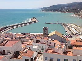 We make a stop in Tortosa Here we make a short guided tour along a few interesting buildings, like e.g. the former escorxador (abattoir), a building in modernist style, the Jewish quarter, the cathedral, the pilgrim’s gate (and its legend). We leave Tortosa and we go to the “Pearl of the Costa del Azahar”, to visit the “City in the Sea”: Peñíscola, the Mont St Michel of Spain. Many peoples in the Mediterranean Area had their colony here, like the Fenicians, the Greeks, the Carthaginians and Romans. Also the Arabs arrived here in 714 with their leader Tarik. Also the name of Peñíscola has an arab origin.