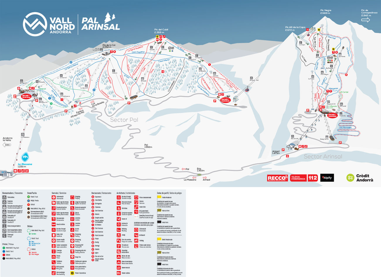 ✔️ Vallnord Pal Arinsal cuenta con todos los servicios necesarios en una estación de esquí: Alquileres, dos escuelas, bares y cafeterías en pista, alojamientos, atención al cliente, tiendas, servicios médicos y sanitarios, transporte gratuito al otro sector de Vallnord, Ordino/Arcalís, etc.