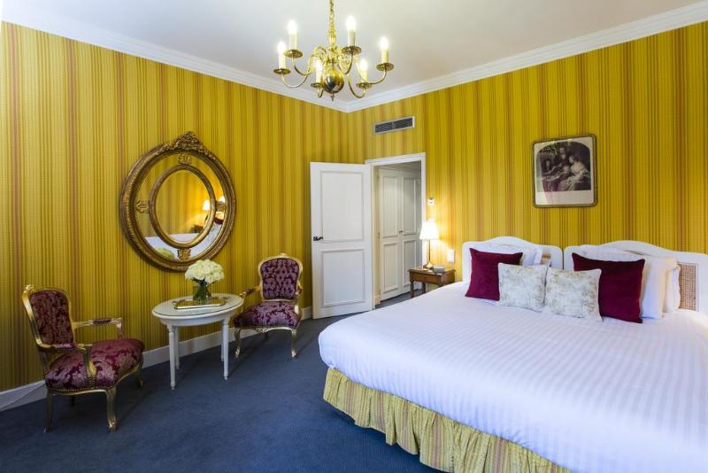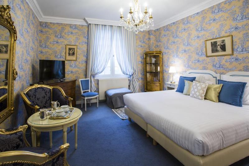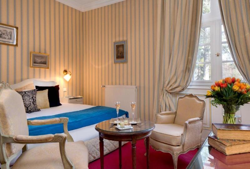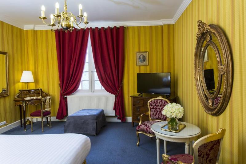 Las elegantes habitaciones con cuarto de baño se encuentran en el edificio principal y están dotadas de secador de pelo y vistas a la terraza o al patio de honor. Hay habitaciones con dos camas individuales disponibles a petición. Las habitaciones están equipadas con conexión a Internet WiFi, teléfono de línea directa, minibar, TV con pantalla plana, aire acondicionado regulable (sobre demanda y según disponibilidades), calefacción central, caja fuerte, set de plancha y sala de estar. Se puede acceder a las habitaciones por las escaleras o por ascensor.